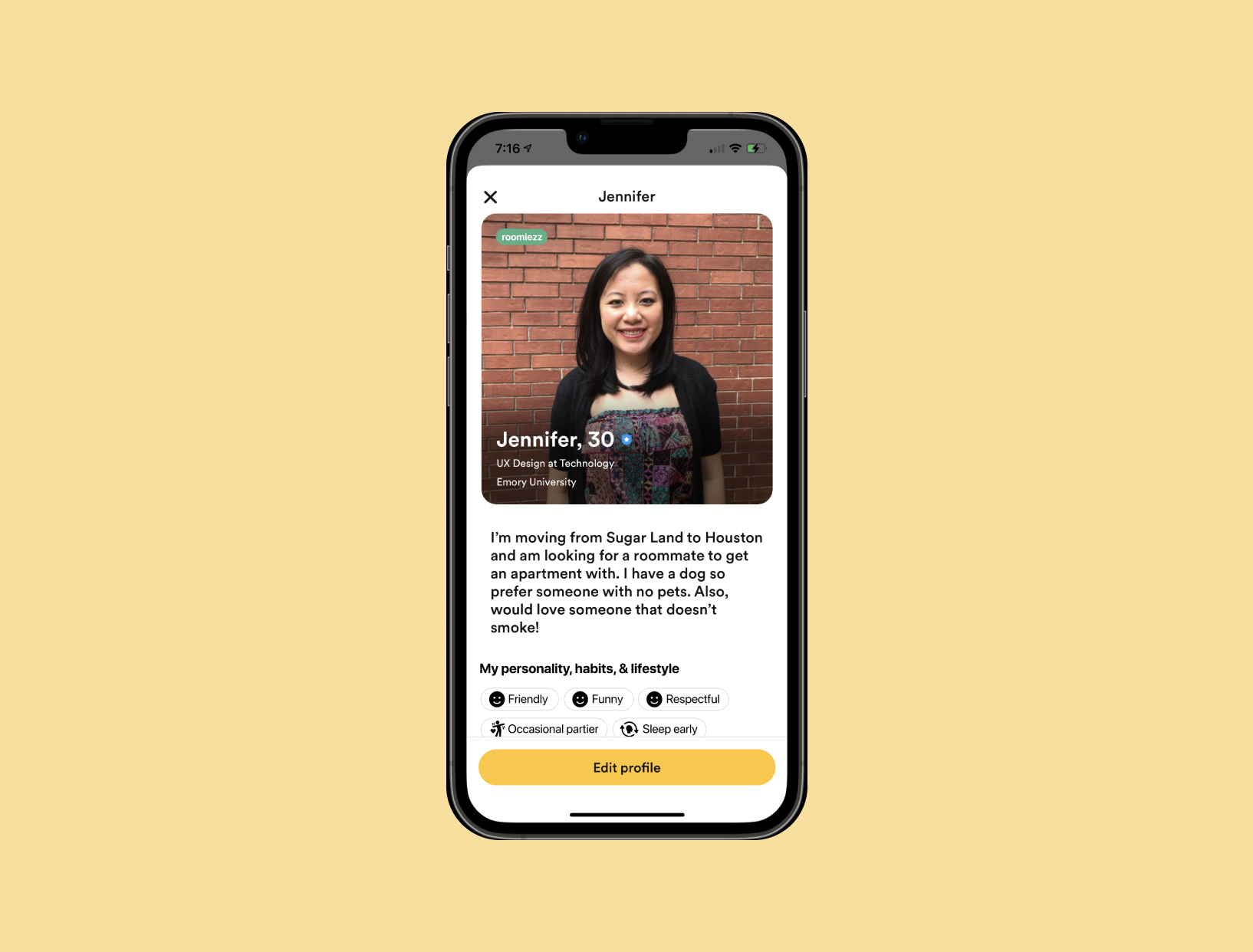 Browse First Potential Roommate Profile (Scrollable)
